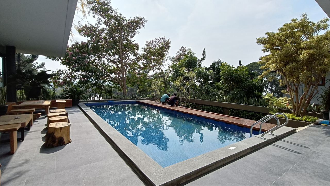 - View: kolam renang, Gunung Burangrang